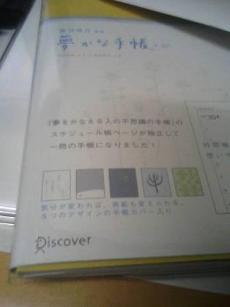 部活帰りに時間も無いのに本屋とスーパーへ行きました。本屋に手帳が大量にあり、以前挙げた条件に叶う手帳は無いものかうろうろしていました。したらばちょっと素敵な手帳を発見!その名も『夢かな手帳』中身は至ってシンプルなのですが月間予定表も縦割り週間予定表も希望通りで何より!時間軸が6時から(本音は4時からほしい…最近は手作りのエクセル週間予定表を活用していました)が嬉しいです。特典?として気分によって変えられる5つの手帳カバー、使い方が独特の世界観でもって書かれた薄いガイダンスブックが付いています。ちなみに限定版。何だか優しい気持ちになれそうな手帳です。もしかしたらこれで良いかもしれません。